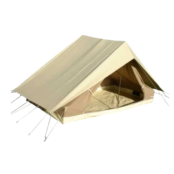 Techniquement, il s’agit d’une tente à ouverture triangulaire, soutenue non pas par une armature complexe, mais par deux mâts verticaux (souvent en aluminium pour plus de légèreté), des tendeurs et des piquets. Les pans du toit descendent jusqu’au sol ou reposent sur de courts murs verticaux de 25 à 40 cm, ce qui lui donne parfois une vraie petite “hauteur sous plafond” ! Pratique et robuste.